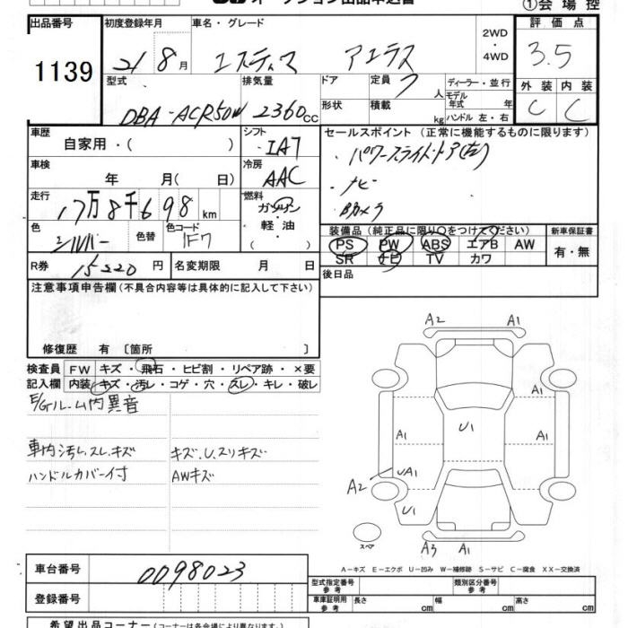 TOYOTA ESTIMA - лот 1139