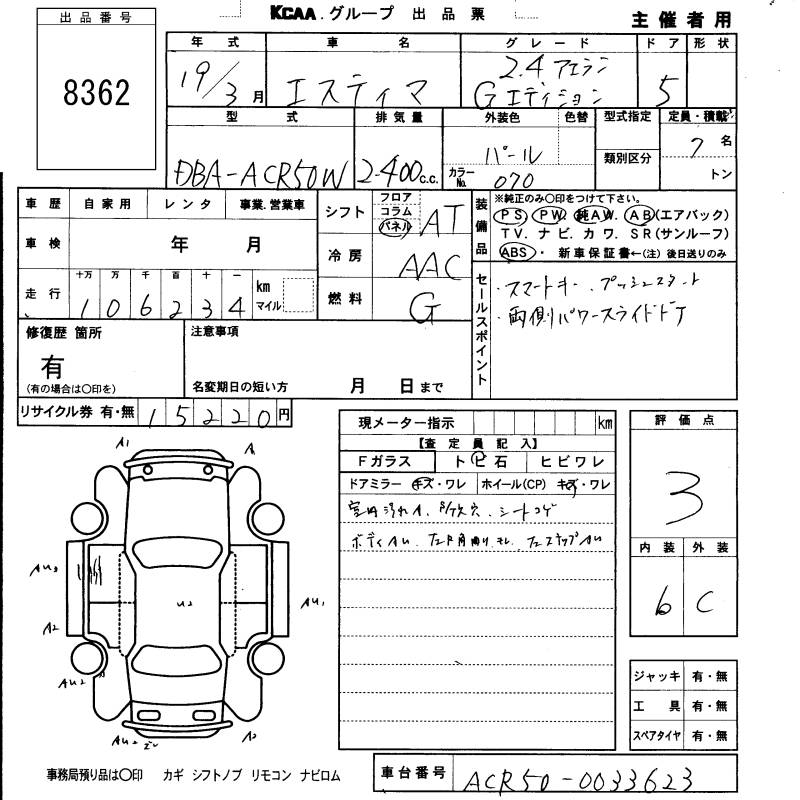 TOYOTA ESTIMA - лот 8362