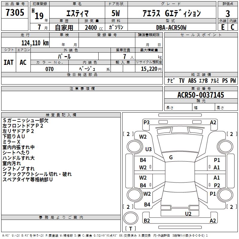 TOYOTA ESTIMA - лот 7305