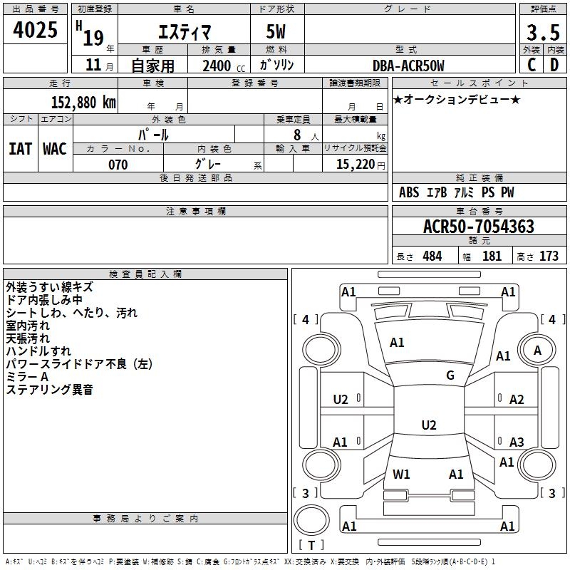 TOYOTA ESTIMA - лот 4025