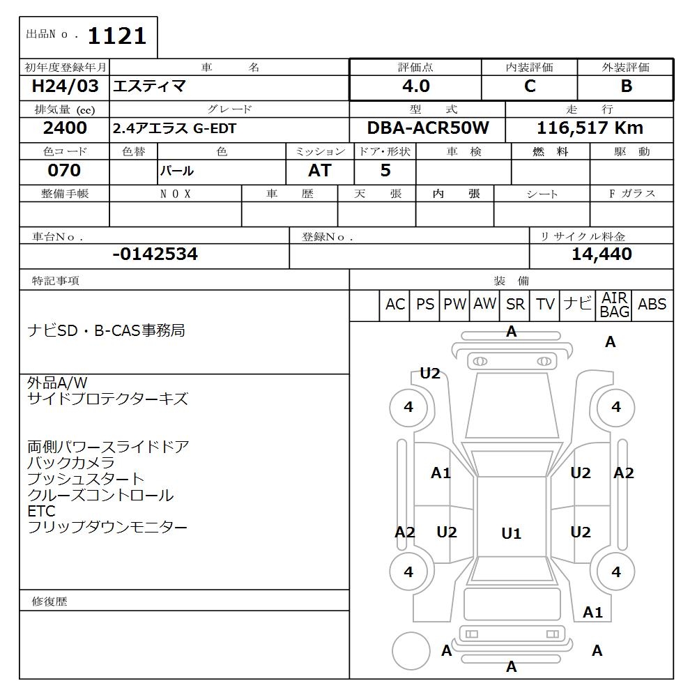 TOYOTA ESTIMA - лот 1121
