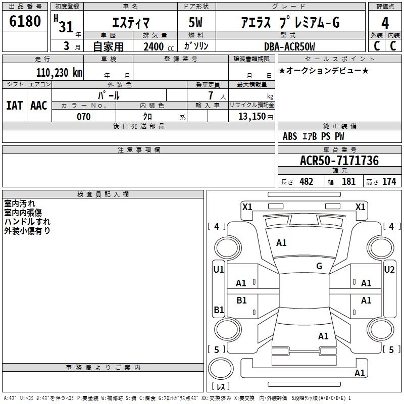 TOYOTA ESTIMA - лот 6180