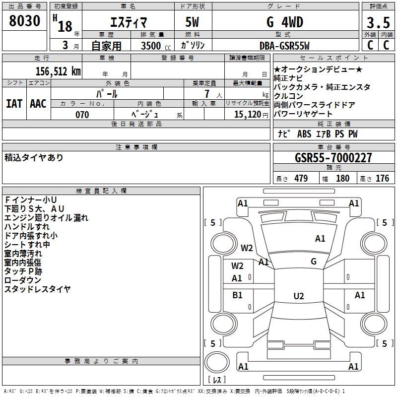 TOYOTA ESTIMA - лот 8030