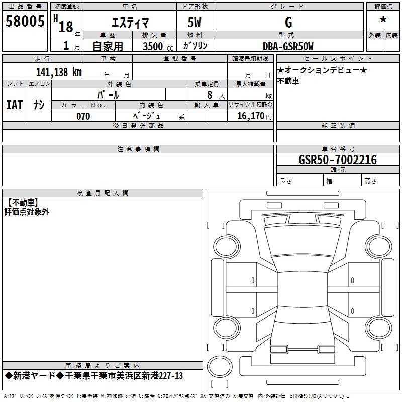 TOYOTA ESTIMA - лот 58005