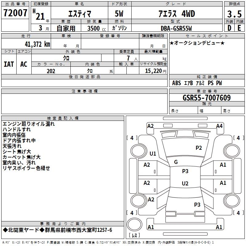 TOYOTA ESTIMA - лот 72007