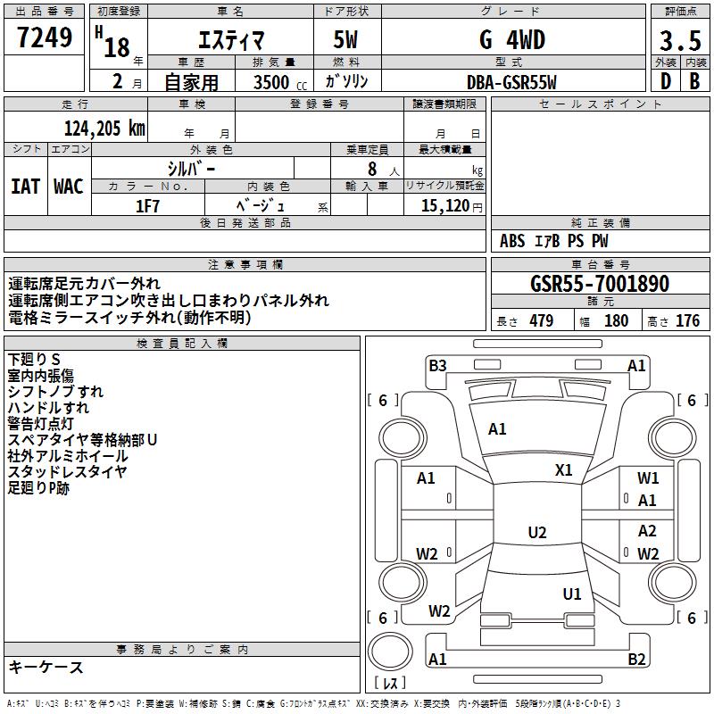 TOYOTA ESTIMA - лот 7249