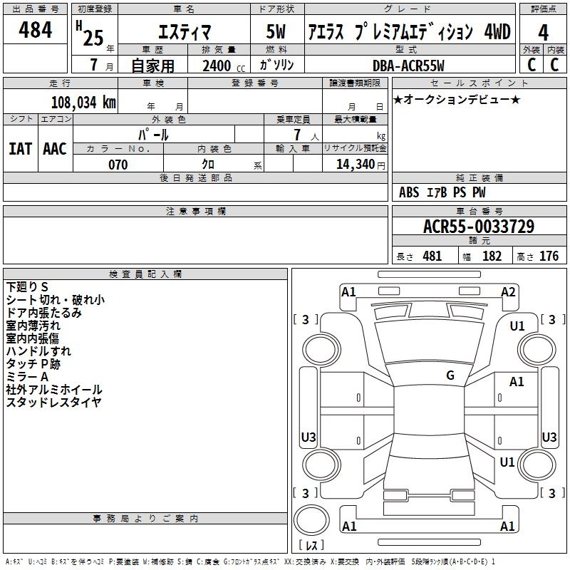 TOYOTA ESTIMA - лот 484