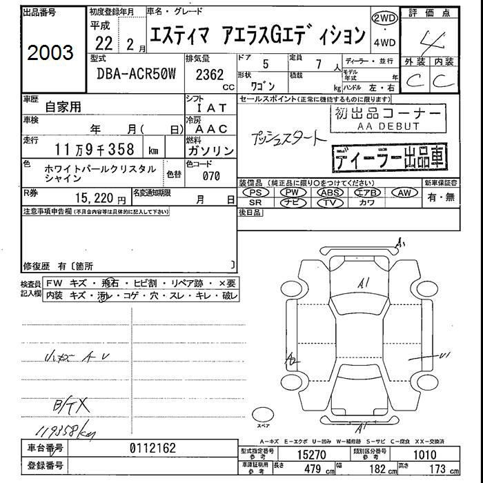 TOYOTA ESTIMA - лот 2003