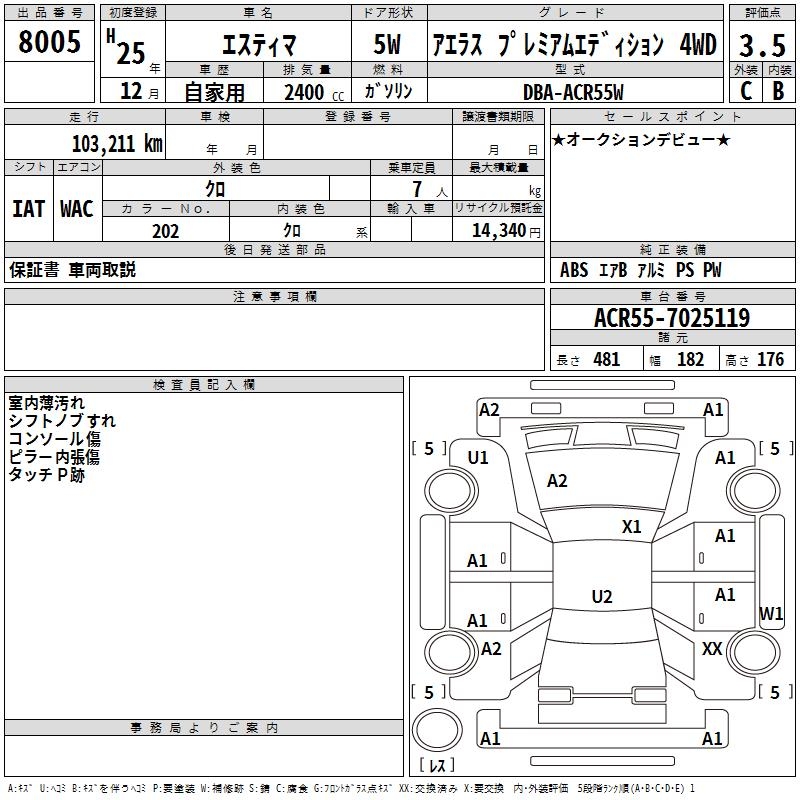 TOYOTA ESTIMA - лот 8005