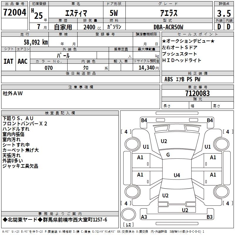 TOYOTA ESTIMA - лот 72004
