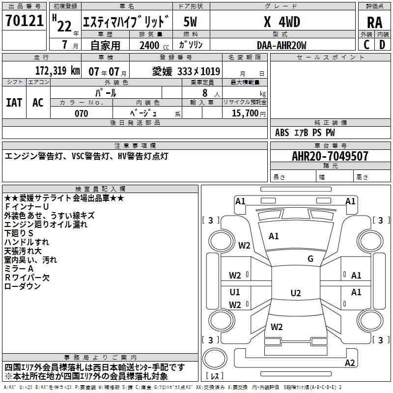 TOYOTA ESTIMA HYBRID - лот 70121