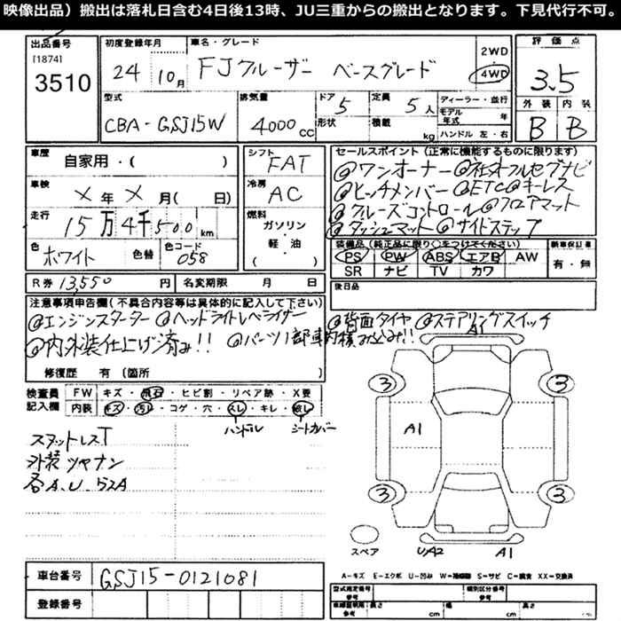 TOYOTA FJ CRUISER 4WD BASE GRADE - лот 3510