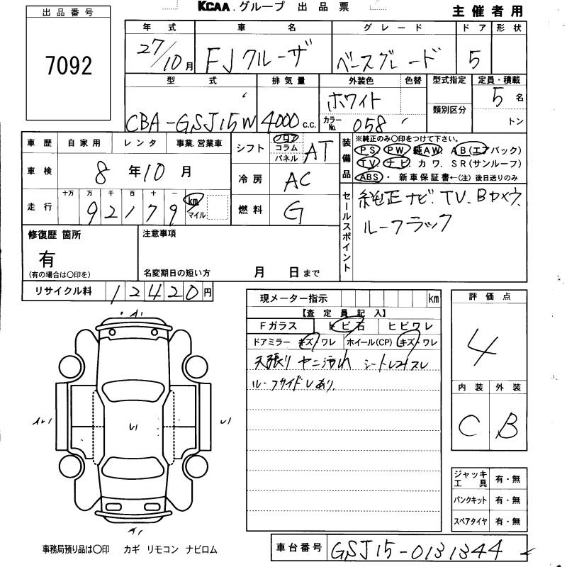 TOYOTA FJ CRUISER BASE GRADE - лот 7092