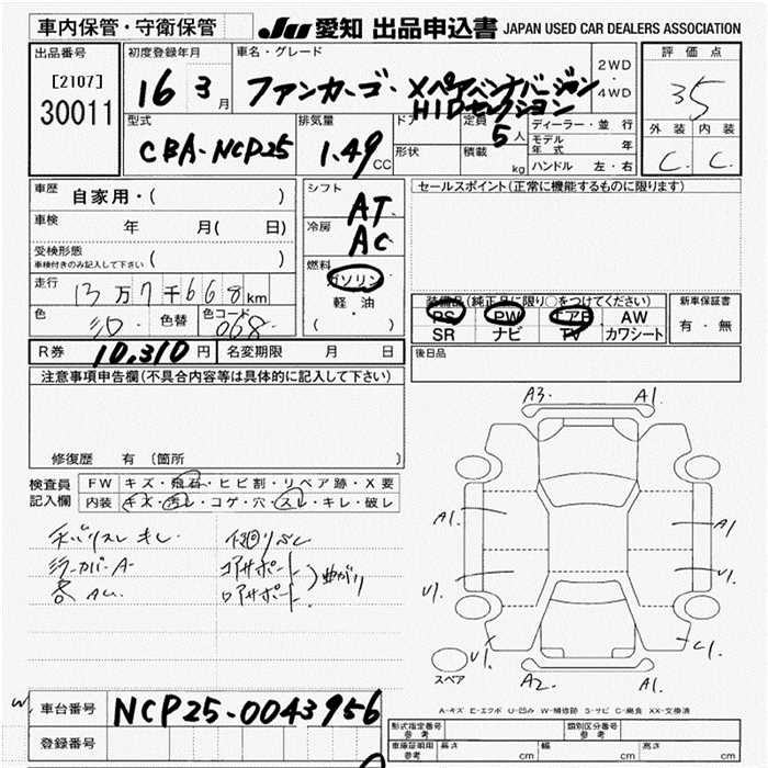 TOYOTA FUN CARGO X PAIR B-VER HID SELECTION - лот 30011