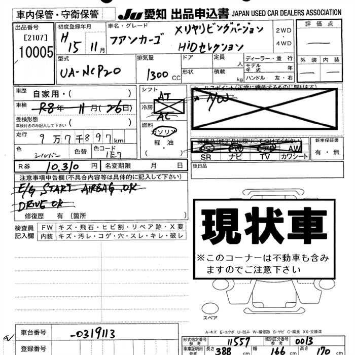TOYOTA FUN CARGO X REAR LIVING VER HID SELECTION - лот 10005