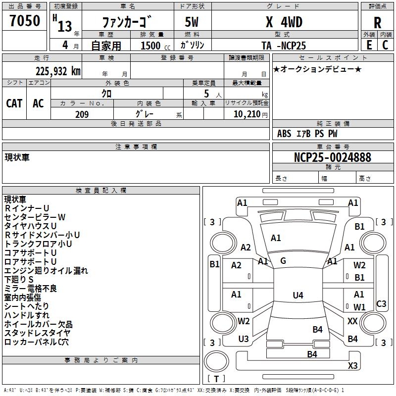 TOYOTA FUN CARGO X 4WD - лот 7050