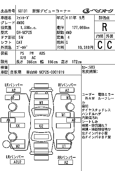 TOYOTA FUN CARGO 4WD G - лот 60131