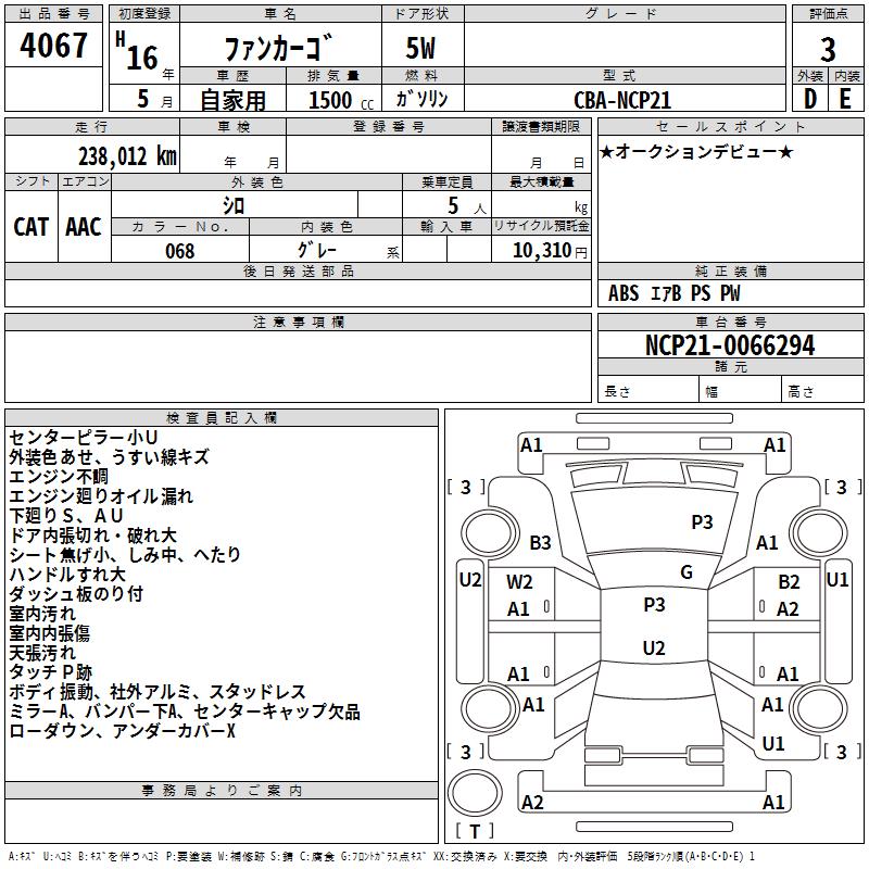 TOYOTA FUN CARGO - лот 4067