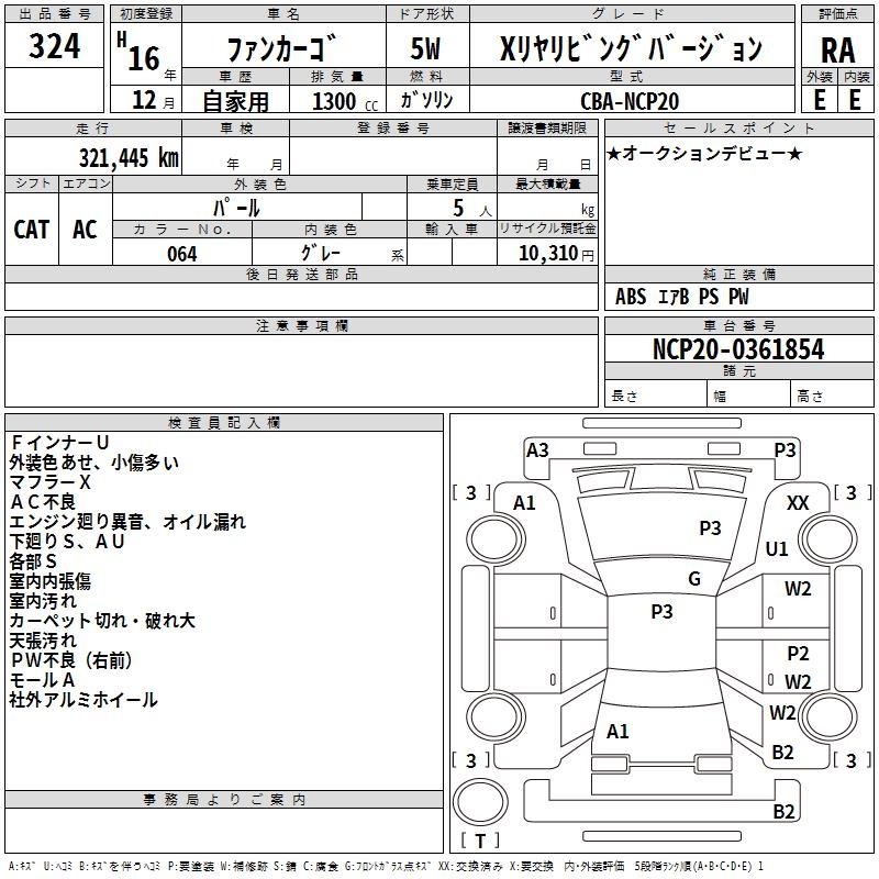TOYOTA FUN CARGO X REAR LIVING VERSION - лот 324