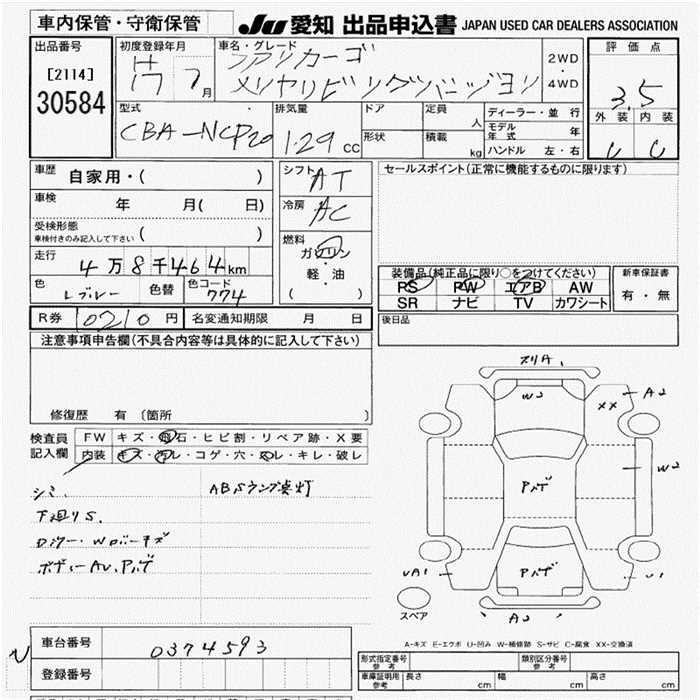 TOYOTA FUN CARGO X REAR LIVING VERSION - лот 30584
