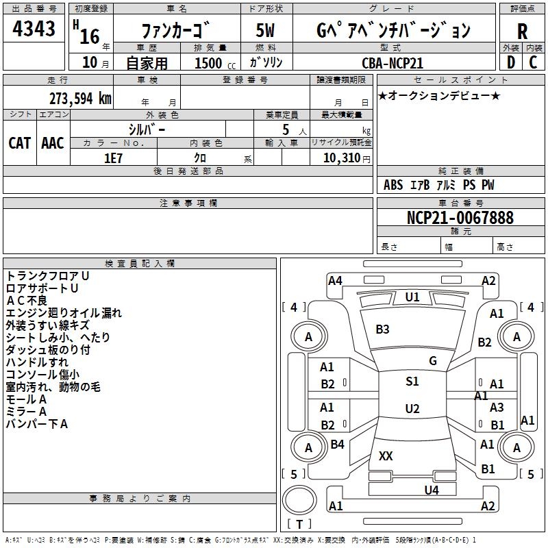 TOYOTA FUN CARGO G PAIR BENCH VERSION - лот 4343