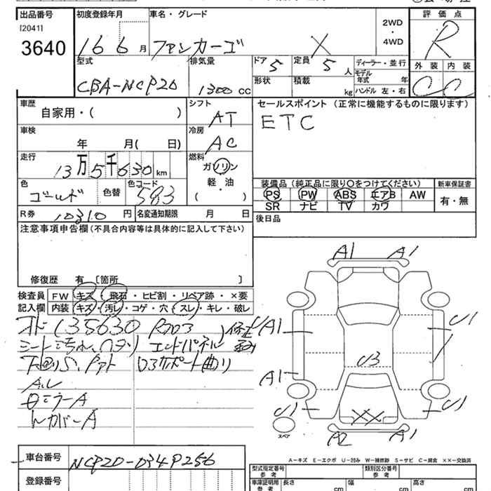 TOYOTA FUN CARGO X - лот 3640