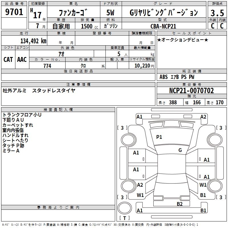 TOYOTA FUN CARGO G REAR LIVING VERSION - лот 9701