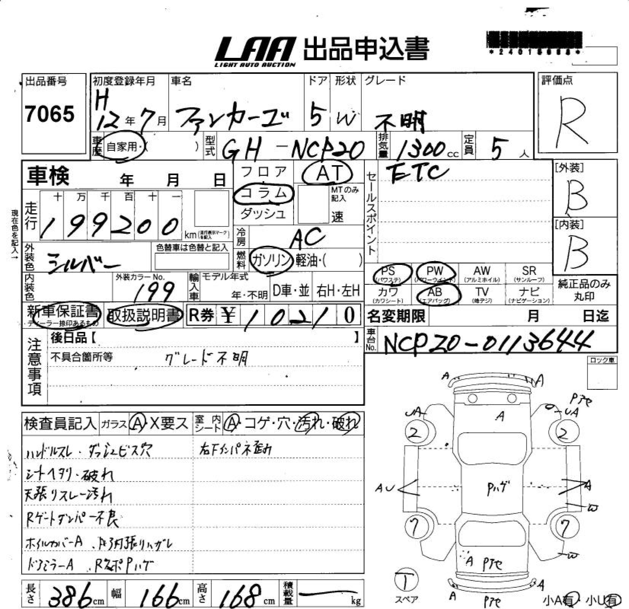 TOYOTA FUN CARGO - лот 7065