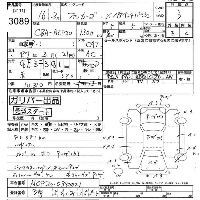 TOYOTA FUN CARGO - лот 3089