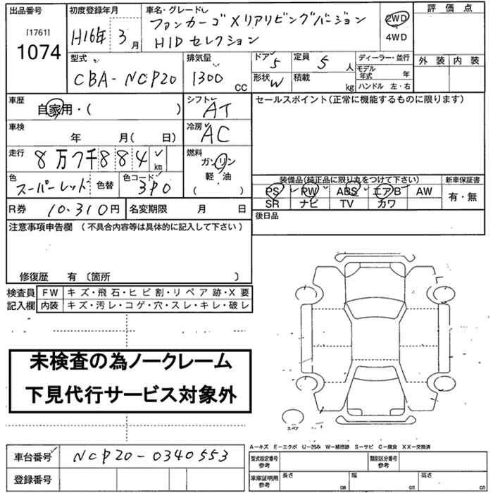 TOYOTA FUN CARGO - лот 1074