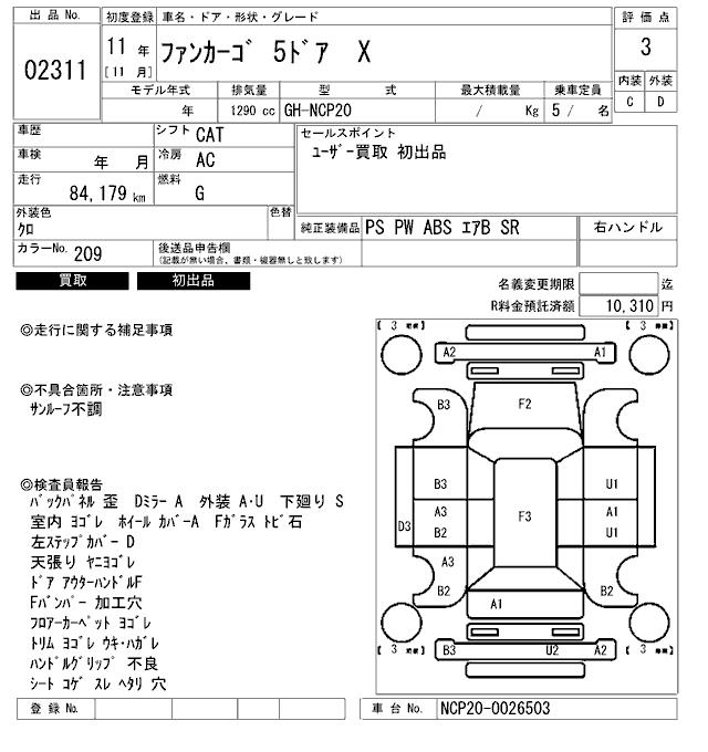 TOYOTA FUN CARGO - лот 2311