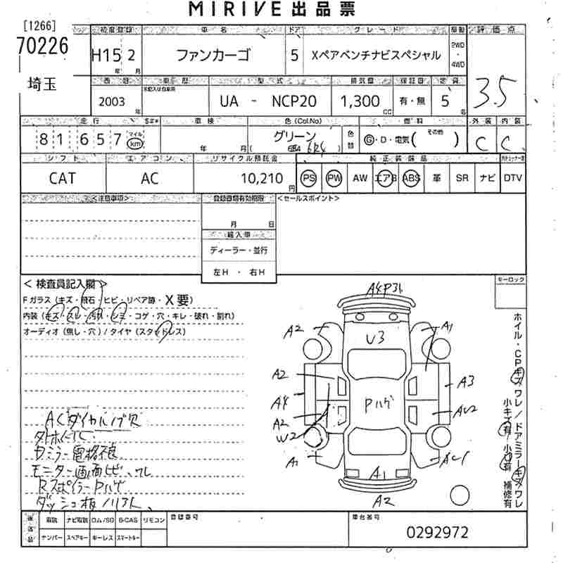 TOYOTA FUN CARGO X PAIRBENCH NAVIGATION SPECIAL - лот 70226