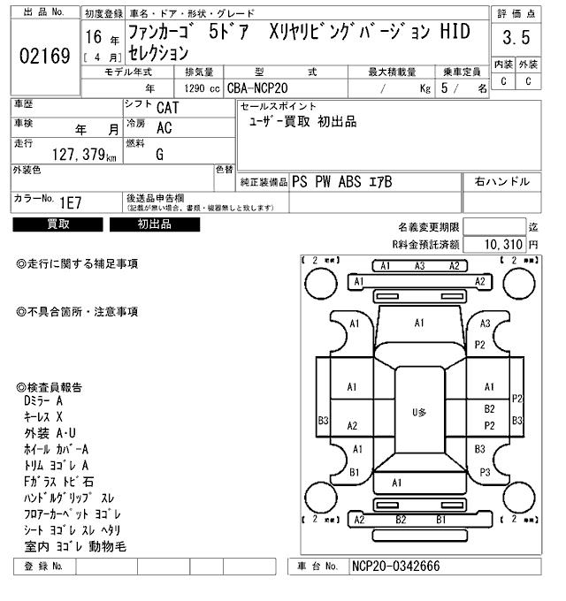 TOYOTA FUN CARGO X REAR LIVING VERSION HID SELECTION - лот 2169