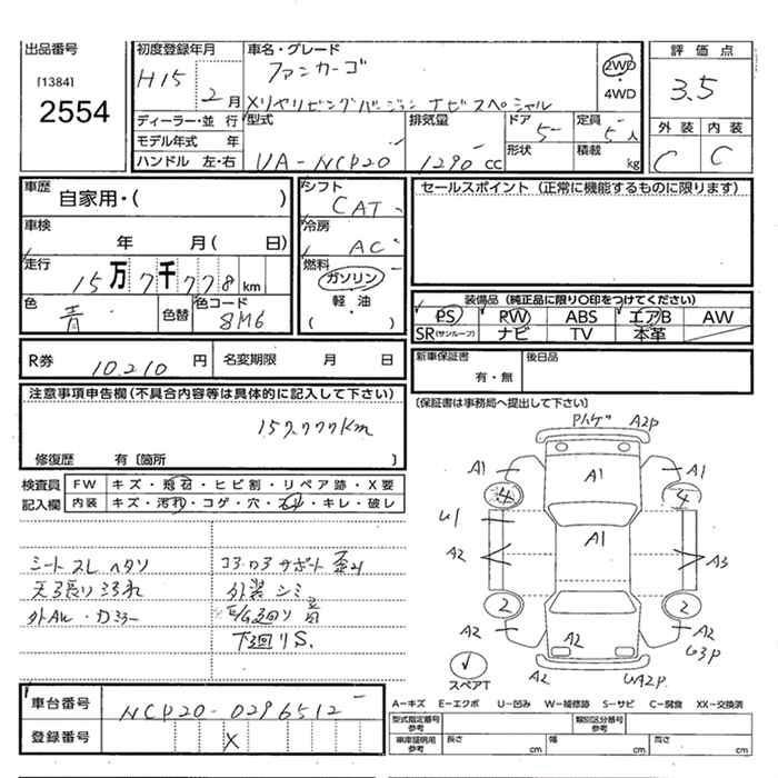 TOYOTA FUN CARGO X REAR LIVING VER. NAVIGATION SPECIAL 2WD - лот 2554