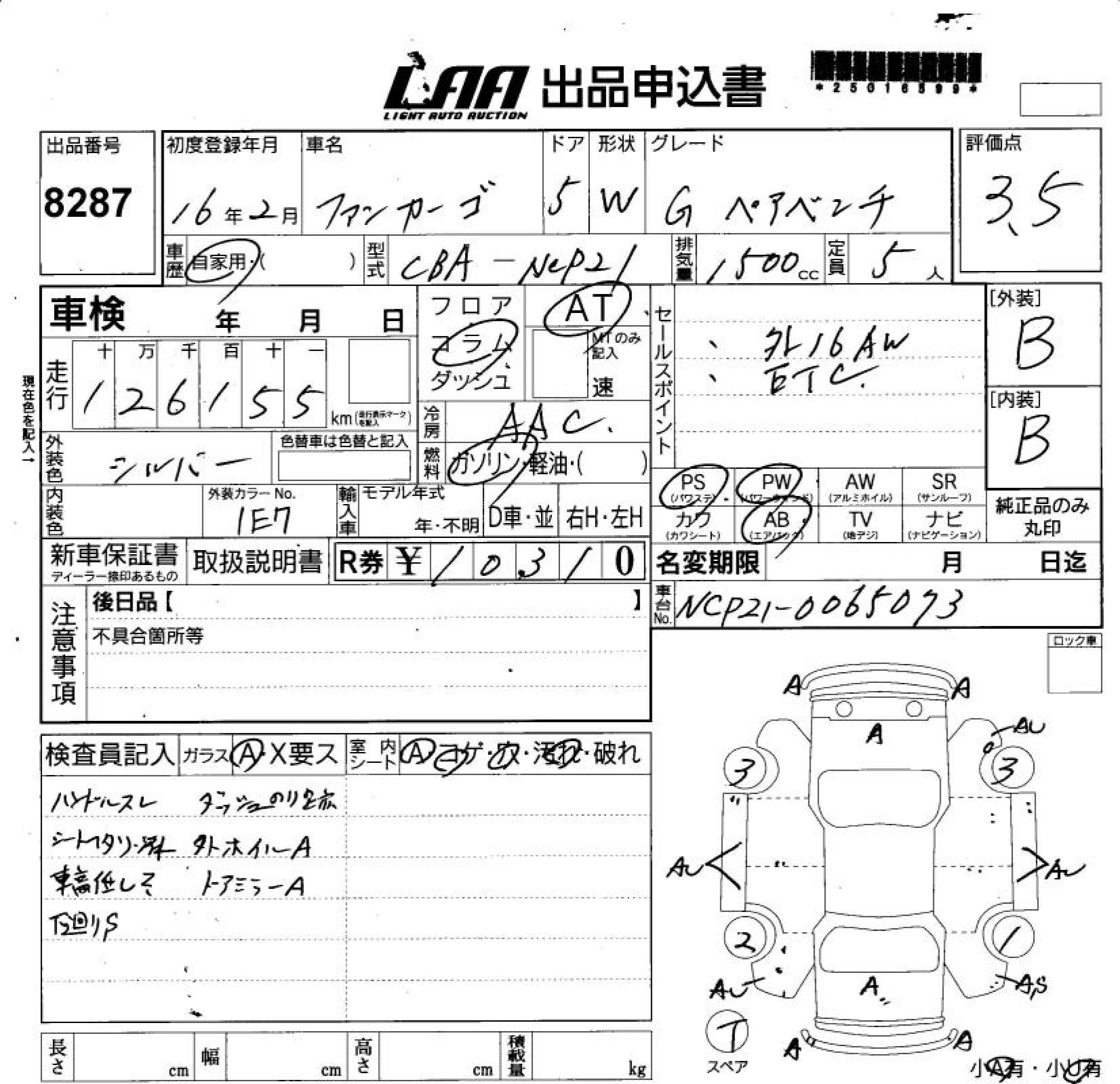 TOYOTA FUN CARGO G PAIR BENCH VERSION - лот 8287