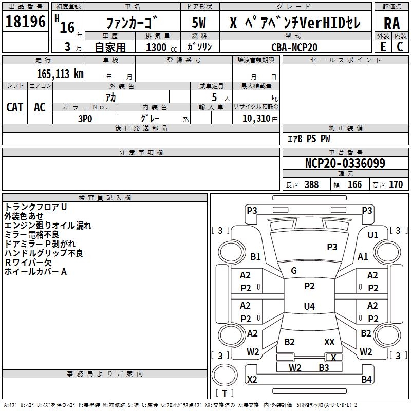 TOYOTA FUN CARGO X PAIRBENCH VERHID SELECTION - лот 18196
