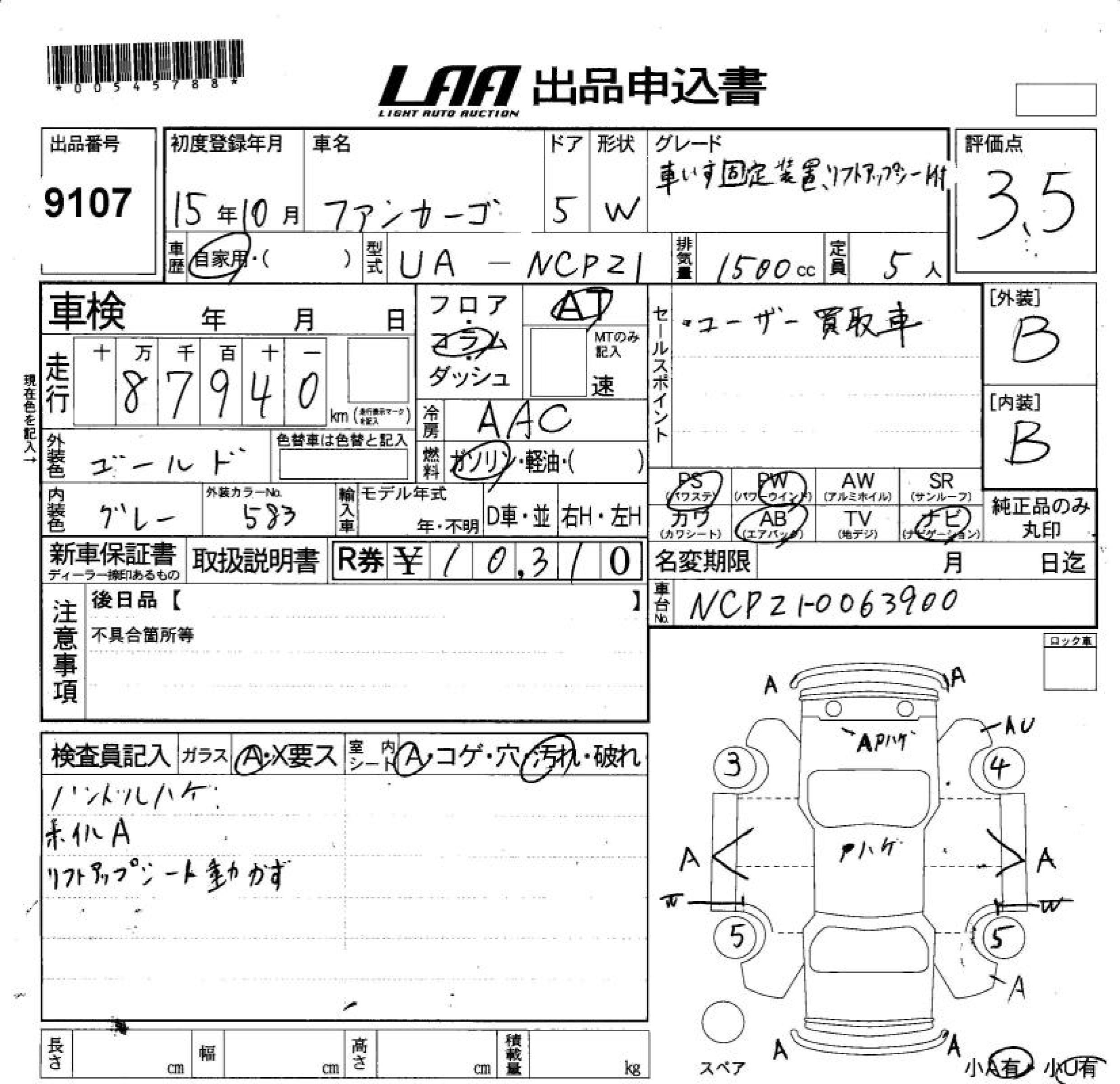 TOYOTA FUN CARGO EQUIPMENT FOR FASTENING A WHEELCHAIR IN A CAR LIFT UP SI - лот 9107