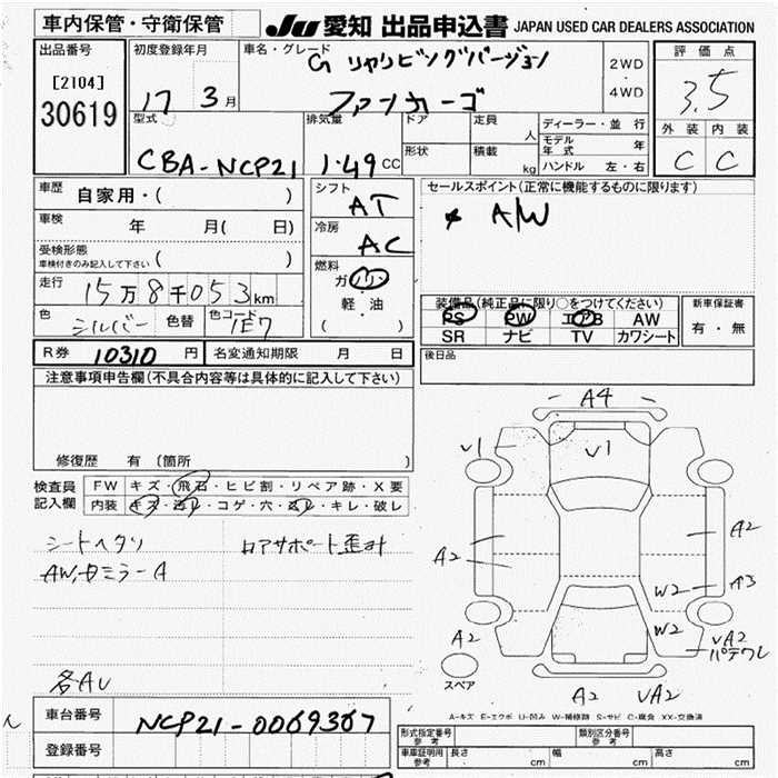 TOYOTA FUN CARGO G REAR LIVING VERSION - лот 30619