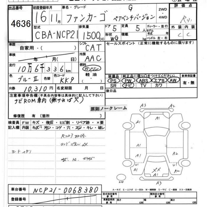 TOYOTA FUN CARGO G PAIRBENCH VER. - лот 4636