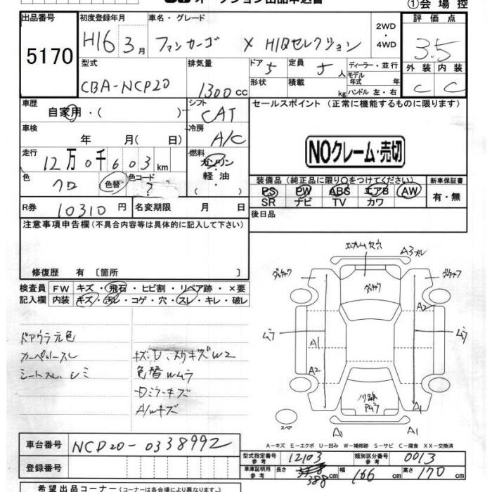 TOYOTA FUN CARGO X HID SELECTION - лот 5170
