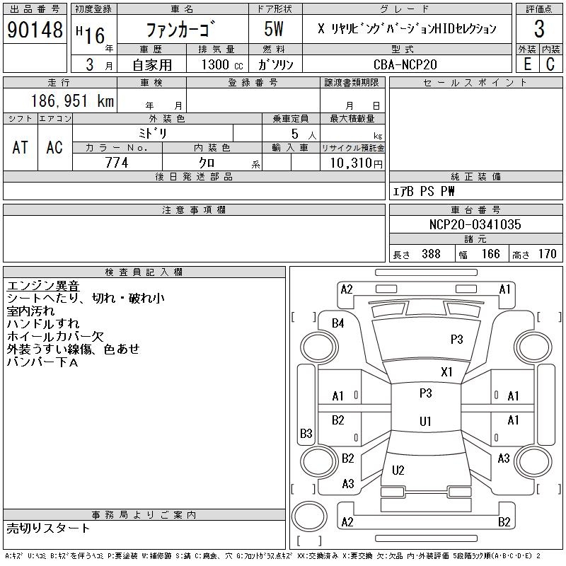 TOYOTA FUN CARGO X REAR LIVING VERHID SELECTION - лот 90148
