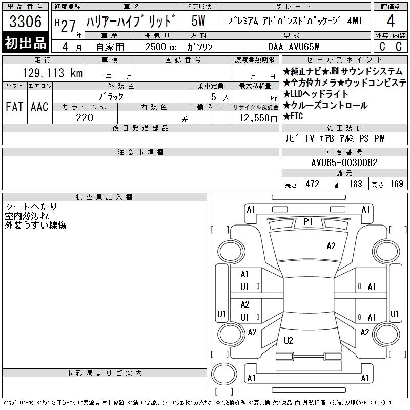 TOYOTA HARRIER HYBRID - лот 3306