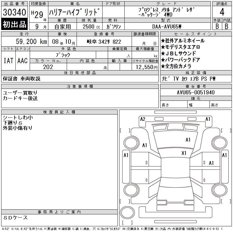 TOYOTA HARRIER HYBRID - лот 30340