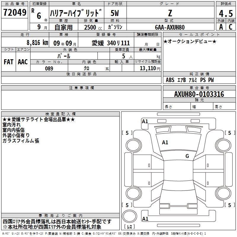 Все аукционы TOYOTA HARRIER HYBRID
