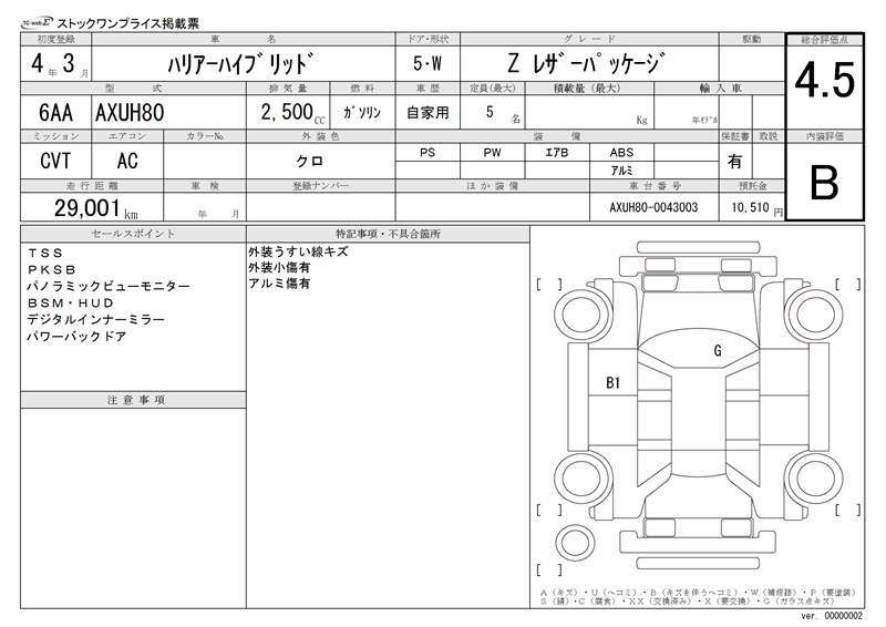 TOYOTA HARRIER HYBRID - лот 14950