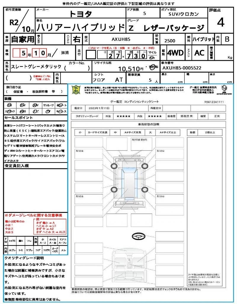 Все аукционы TOYOTA HARRIER HYBRID
