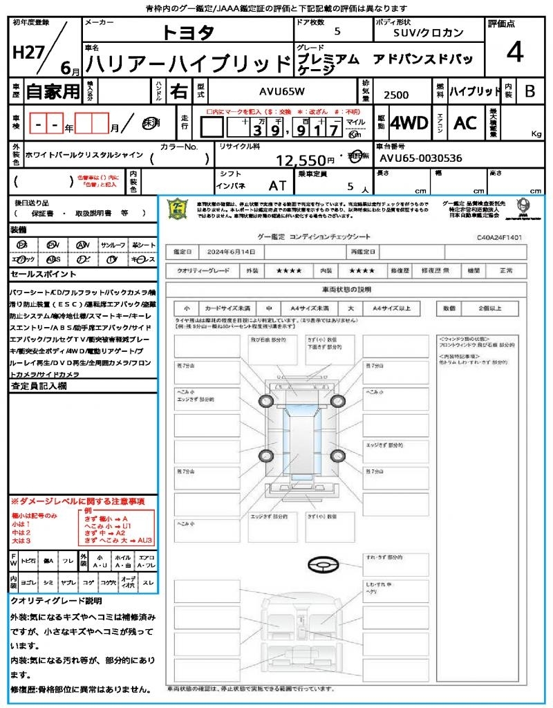 TOYOTA HARRIER HYBRID - лот 4450