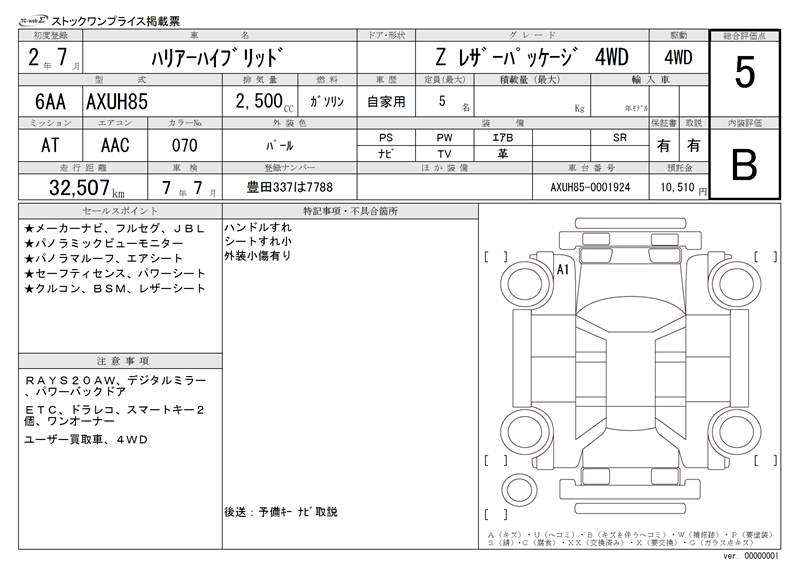 TOYOTA HARRIER HYBRID - лот 22135