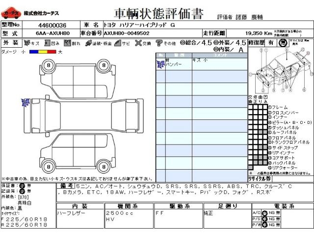 TOYOTA HARRIER HYBRID - лот 59565
