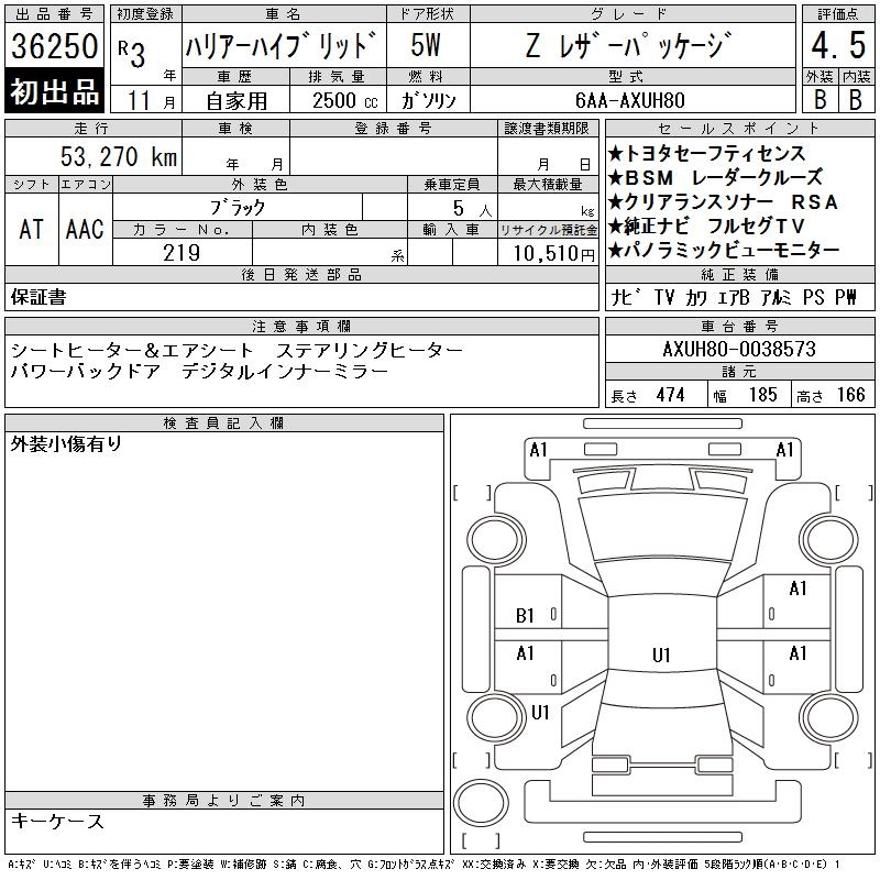TOYOTA HARRIER HYBRID - лот 36250